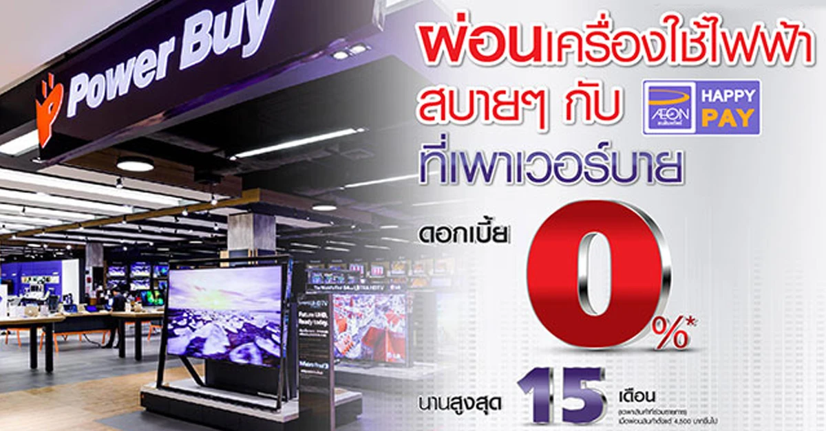 ผ่อนเครื่องใช้ไฟฟ้าสบายๆ กับ AEON Happy Pay ที่ เพาเวอร์บาย พร้อมดอกเบี้ย 0% นานสูงสุด 15 เดือน