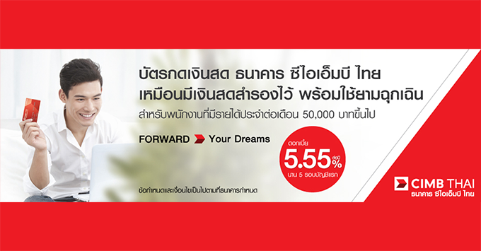 สินเชื่อ cimb thai ดอกเบี้ย ซีไอเอ็มบี ไทย บัตรกดเงินสด สินเชื่อบัตรกดเงินสด บัตรสินเชื่อบุคคลเอ็กซ์ตร้าแคช เงินสดสำรอง