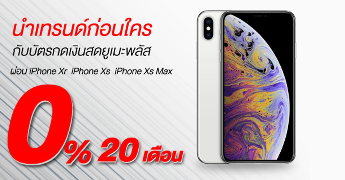 ผ่อน iPhone Xr, iPhone Xs, iPhone Xs Max 0% นาน 20 เดือน จากบัตรกดเงินสดยูเมะพลัส