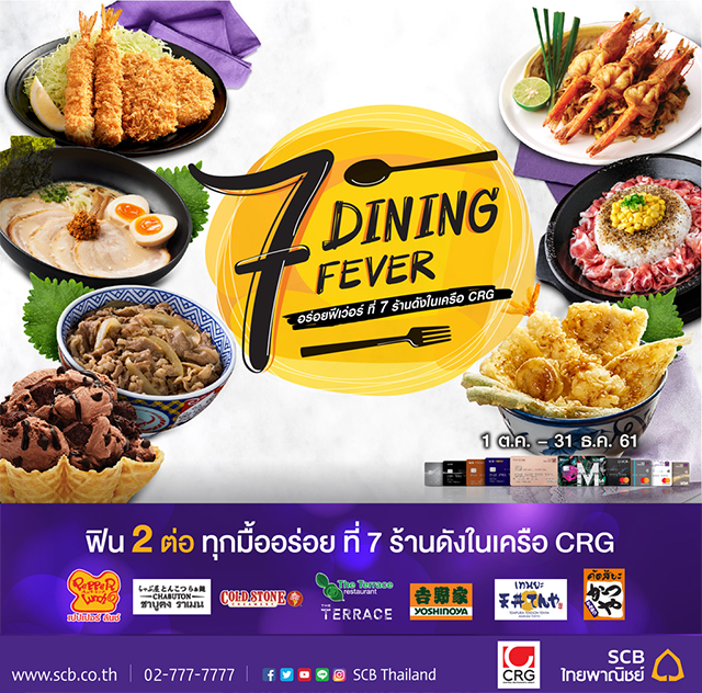 บัตรเครดิตไทยพาณิชย์ ให้คุณฟิน 2 ต่อ ทุกมื้ออร่อย ที่ 7 ร้านดังในเครือ CRG