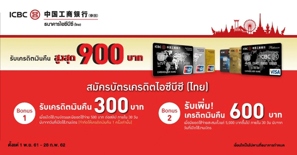 บัตรเครดิตไอซีบีซี (ไทย) วันนี้ รับเครดิตเงินคืนสูงสุด 900 บาท