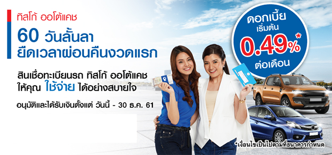 ทิสโก้ ออโต้แคช 60 วันลั้นลา ยืดเวลาผ่อนคืนงวดแรก