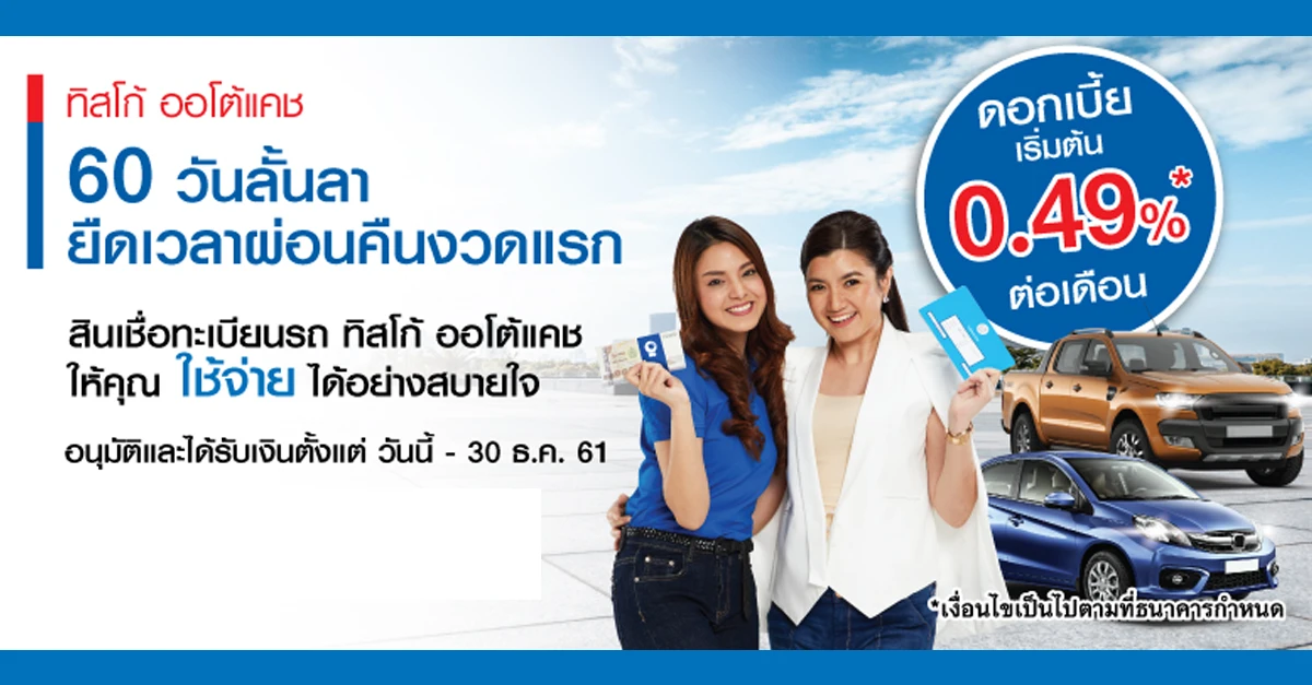 ทิสโก้ ออโต้แคช 60 วันลั้นลา ยืดเวลาผ่อนคืนงวดแรก