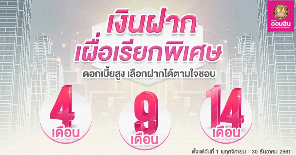บัญชีเงินฝากเผื่อเรียกพิเศษ 4, 9 และ 14 เดือน ... ธนาคารออมสิน