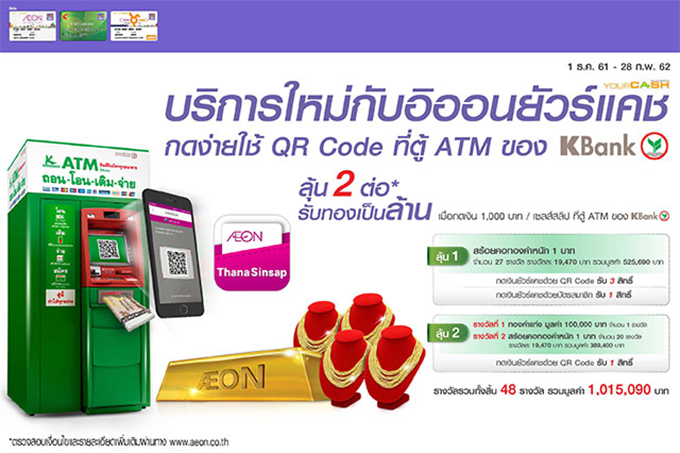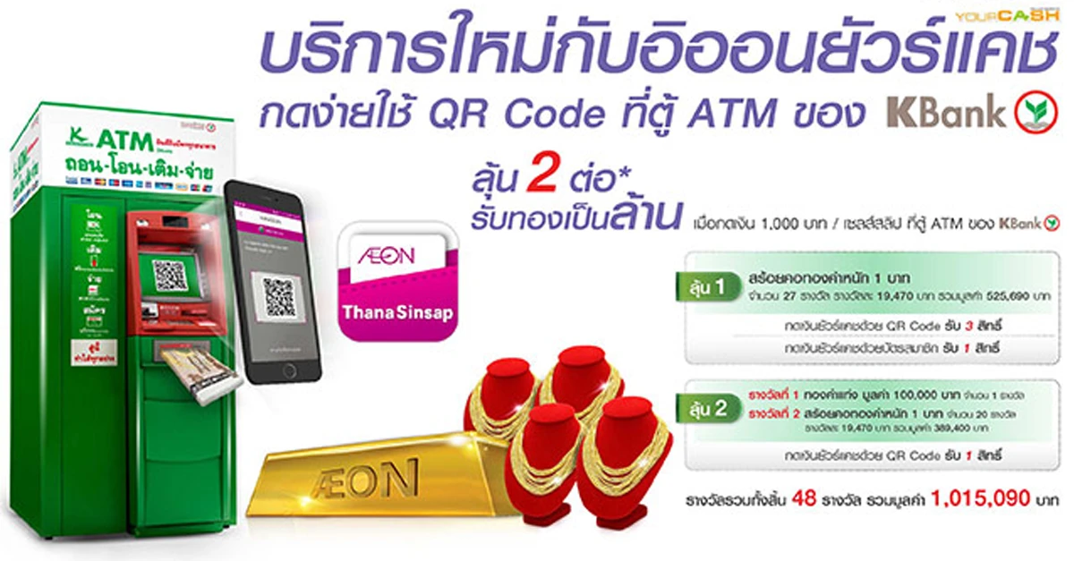 บริการใหม่กับอิออนยัวร์แคช กดง่ายใช้ QR-Code ที่ตู้เอทีเอ็ม ธนาคารกสิกรไทย