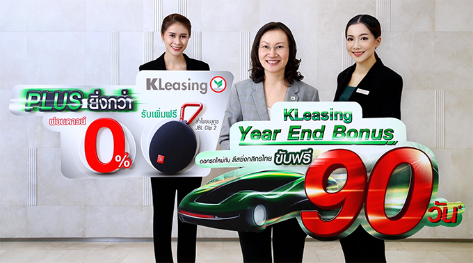 นางสาวพัชรี อุทัยรัตนกิจ รองกรรมการผู้จัดการ บริษัท ลีสซิ่งกสิกรไทย จำกัด เปิดตัวแคมเปญ KLeasing Year End Bonus ต้อนรับมหกรรม Thailand International Motor Expo 2018 เมื่อสมัครสินเชื่อเช่าซื้อรถใหม่กับลีสซิ่งกสิกรไทย ระหว่างวันที่ 28 พฤศจิกายน - 14 ธันวาคม 2561 และออกรถภายใน 31 มกราคม 2562 รับสิทธิพิเศษขับฟรี 90 วัน* ผ่อนดาวน์ 0%  สูงสุด 6 เดือน ผ่านบัตรเครดิตกสิกรไทย พร้อมรับฟรี ลำโพงบลูทูธ JBL Clip 2 มูลค่า 2,490 บาท ที่บูธลีสซิ่งกสิกรไทยภายในงาน Motor Expo 2018 อิมแพ็ค อารีน่า เมืองทองธานี หรือ โชว์รูมผู้แทนจำหน่ายรถทั่วประเทศ
