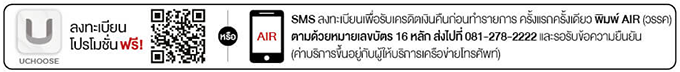 - สงวนสิทธิ์การให้เครดิตเงินคืนเฉพาะสมาชิกบัตรที่ลงทะเบียนผ่าน SMS โดยลงทะเบียนรับสิทธิ์เพียงครั้งเดียวตลอดรายการก่อนชำระเงินผ่านบัตร