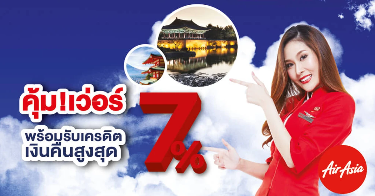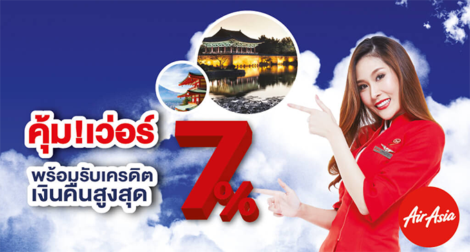 รับเครดิตเงินคืนสูงสุด 7% เมื่อชำระค่าตั๋วเครื่องบินไทยแอร์เอเชีย ผ่านบัตรเครดิต เซ็นทรัล เดอะวัน