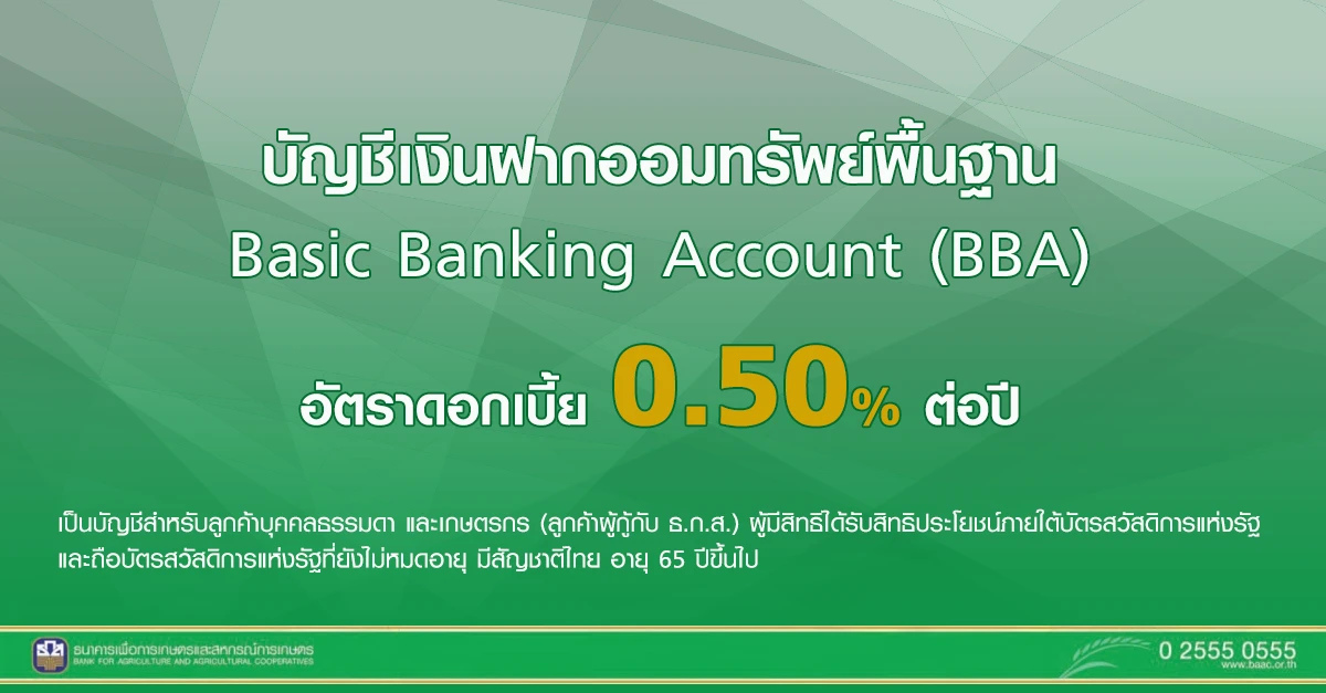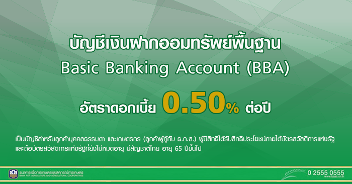 บัญชีเงินฝากออมทรัพย์พื้นฐาน Basic Banking Account (BBA) ... ธ.ก.ส.
