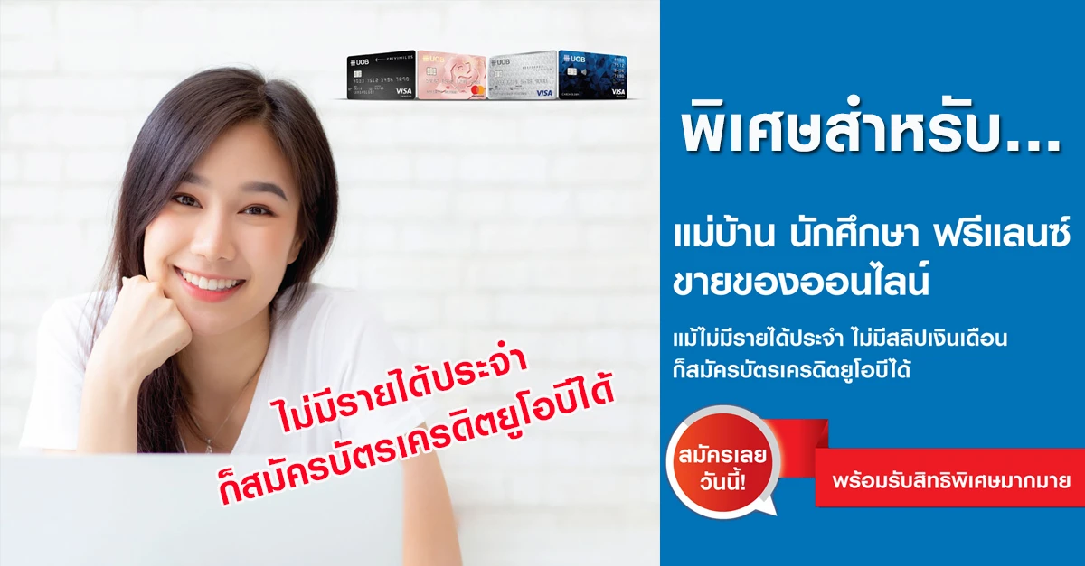พิเศษสำหรับ...แม่บ้าน นักศึกษา ฟรีแลนซ์ ขายของออนไลน์ แม้ไม่มีรายได้ประจำ ไม่มีสลิปเงินเดือน ก็สมัครบัตรเครดิตยูโอบี ได้