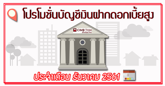 โปรโมชั่นบัญชีเงินฝากดอกเบี้ยสูงประจำเดือนธันวาคม 2561 จากธนาคารซีไอเอ็มบี ไทย บัญชีเงินฝากประจำแบบมีกำหนดระยะเวลาที่ให้ดอกเบี้ยสูง และสามารถเลือกรับดอกเบี้ยแบบรายเดือน หรือเมื่อครบกำหนดได้