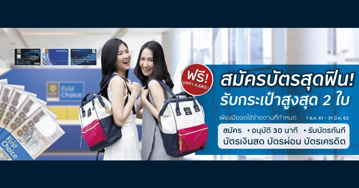 *ฟรีตลอดชีพสำหรับบัตรเฟิร์สช้อยส์ เฉพาะบัตรเครดิตเฟิร์สช้อยส์ ฟรีค่าธรรมเนียมปีแรก และจะยกเว้นปีต่อไปเมื่อมียอดใช้จ่ายสะสม 18,000 บาทต่อปี