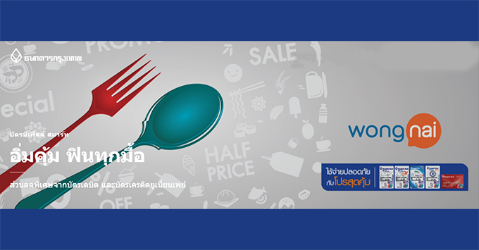 • ส่วนลดพิเศษนี้ เฉพาะ 25 ร้านค้าในกรุงเทพมหานคร และ เชียงใหม่ โดย Wongnai ที่ร่วมรายการเท่านั้น ได้แก่ ร้านเลอเบิฟ/ ร้าน Osha Thai Restaurant & Bar ร่วมฤดี/ ร้าน Hobbs/ ร้านนายห้าง Ihong1919/ ร้าน WALK Rooftop Bar Centara Watergate Pavillion Hotel/ ร้าน Mellow & Bar ทองหล่อ/ ร้าน Patara Fine Thai Cuisine ทองหล่อ/ ร้าน Lucky Fish/ ร้าน Touche Hombre 72 Courtyard/ ร้าน TORO/ ร้าน Palm Cuisine ทองหล่อ 16/ ร้าน Beer Belly 72 Courtyard/ ร้าน Carbarbkk/ ร้าน Monster Beef/ ร้าน Mellow Garden Wine & Dine Restaurant/ ร้าน Karin and Shor's Dining and Ice-cream House/ ร้าน Cuisine de garden/ ร้าน SHIN/ ร้านครัวเพชร ดอยงาม/ ร้านจันทร์หอมเทวดา/ ร้านชาวฟ้าทะเลคราม/ ร้าน Street Pizza & The Wine House/ ร้านแกงร้อนบ้านสวน/ ร้านระเบียง ณ แม่ริม/ ร้านบ้านม่อนม่วน