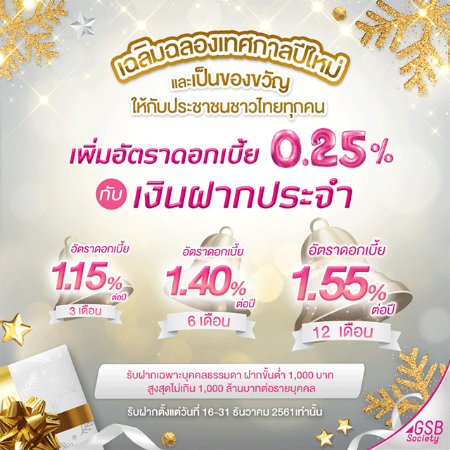 | ประเภทเงินฝาก (สำหรับลูกค้าผู้ฝากทั่วไป) | จำนวนเงินฝาก | อัตราดอกเบี้ย (%ต่อปี) |