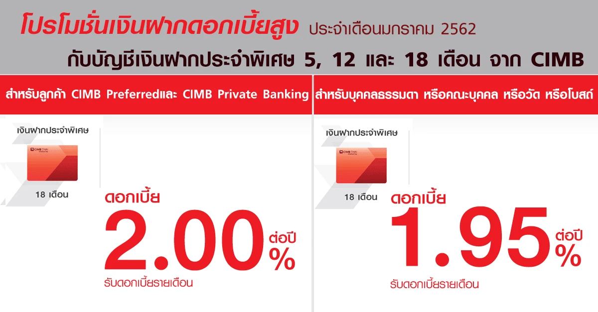 โปรโมชั่นเงินฝากดอกเบี้ยสูง กับ บัญชีเงินฝากประจำพิเศษ 5, 12 และ 18 เดือน จากธนาคารซีไอเอ็มบี ไทย