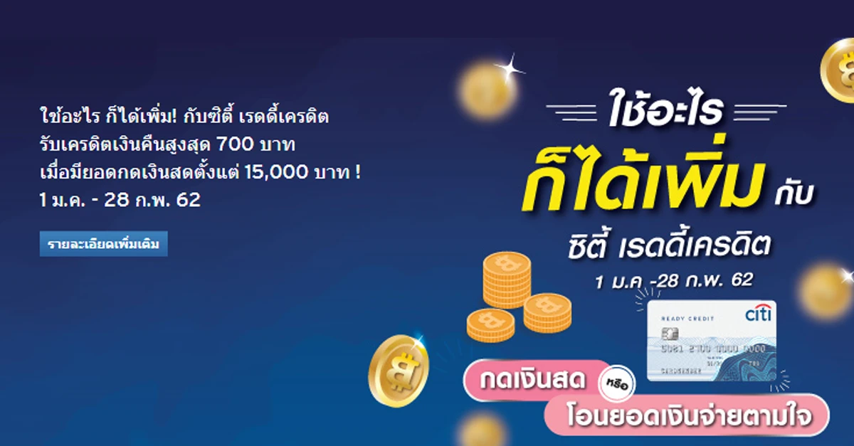 ใช้อะไร ก็ได้เพิ่ม กับซิตี้ เรดดี้เครดิต วันนี้ - 28 ก.พ. 62
