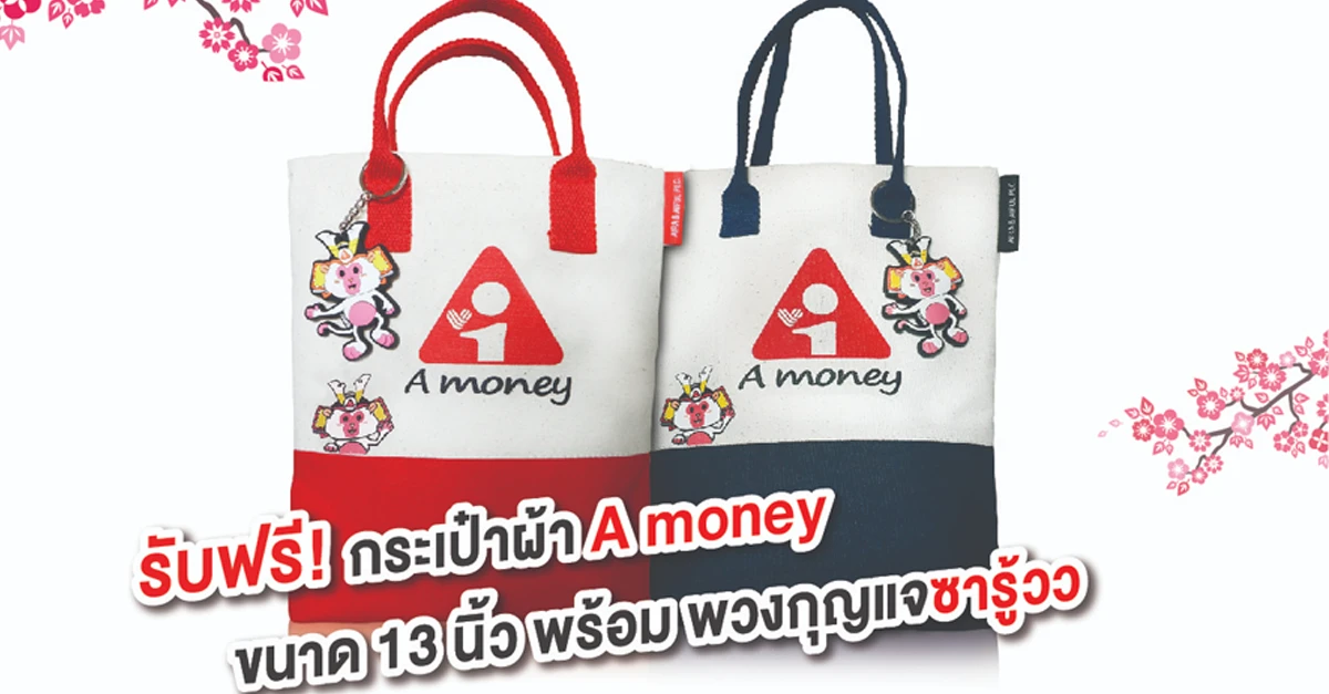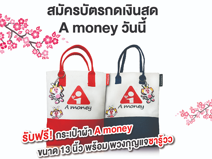 สมัครบัตรกดเงินสด A money วันนี้ รับฟรี! กระเป๋าผ้า Amoney พร้อมพวงกุญแจซารู้วว