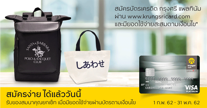 บัตรเครดิตกรุงศรี แพลทินัม สมัครวันนี้ รับของสมนาคุณยกเซ็ต