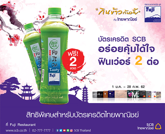 อร่อยคุ้มได้ใจ ฟินเว่อร์ 2 ต่อ กับ บัตรเครดิตไทยพาณิชย์ รับฟรี! Fuji Cha รส Tasty 2 ขวด และเครดิตเงินคืน 12%