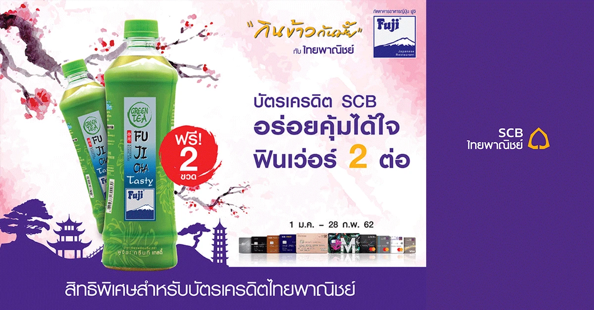 อร่อยคุ้มได้ใจ ฟินเว่อร์ 2 ต่อ กับ บัตรเครดิตไทยพาณิชย์ รับฟรี! Fuji Cha รส Tasty 2 ขวด และเครดิตเงินคืน 12%