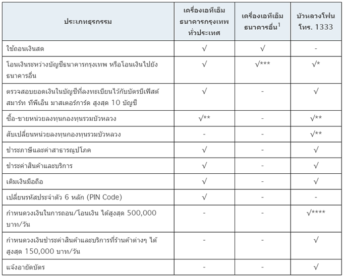 ****สำหรับการกำหนดวงเงินในการถอน/โอน มากกกว่า 200,000 บาท/วัน ต้องเปลี่ยนแปลงวงเงินที่สาขาก่อนใช้บริการ
