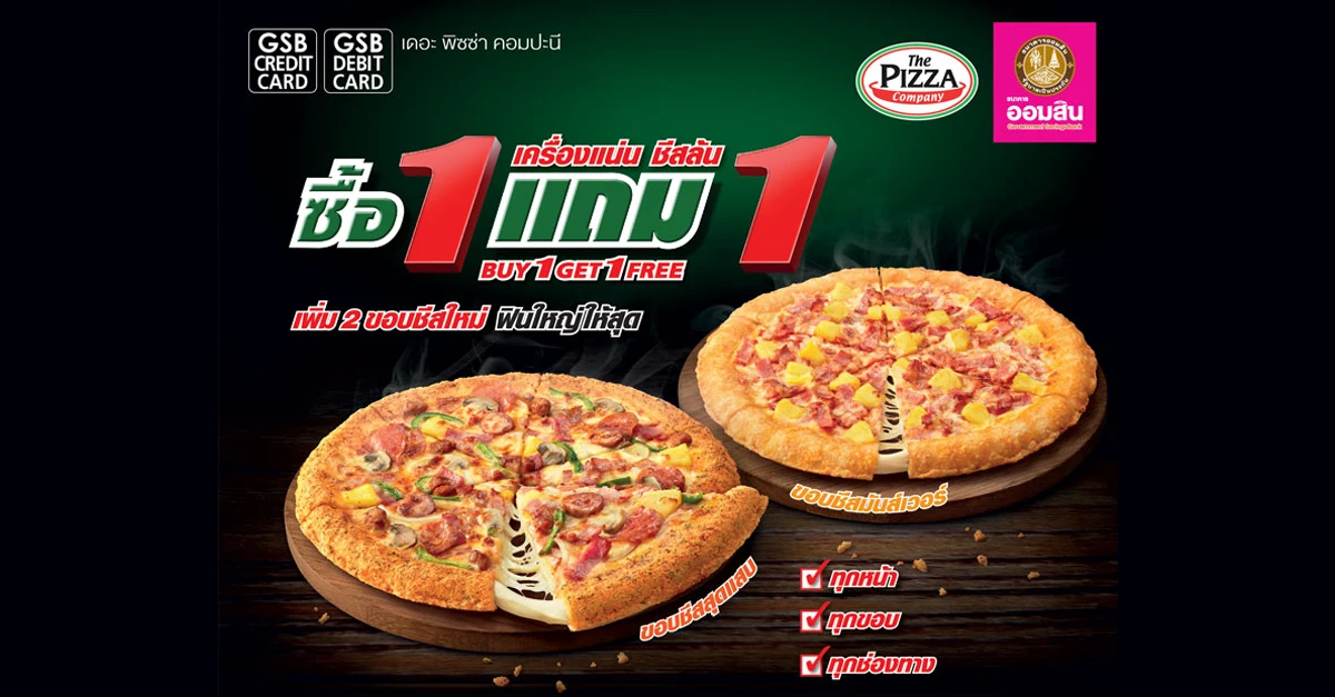 The Pizza Company 1 แถม 1 และรับส่วนลดเพิ่มกับบัตรเครดิตธนาคารออมสิน