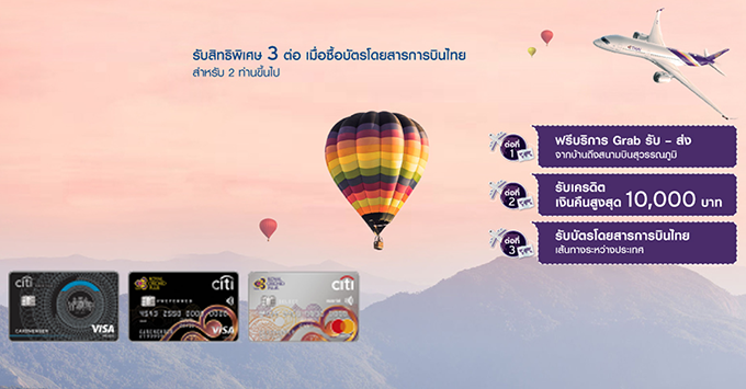 อภิสิทธิ์เฉพาะสมาชิก บัตรเครดิตซิตี้ รับสิทธิพิเศษ 3 ต่อ เมื่อซื้อบัตรโดยสารการบินไทยสำหรับ 2 ท่านขึ้นไปหรือมากกว่า