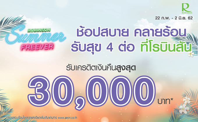 ช้อปสบาย คลายร้อน รับสุข 4 ต่อ ที่โรบินสัน พร้อมรับเครดิตเงินคืนสูงสุด 30,000 บาท จากบัตรเครดิตอิออน