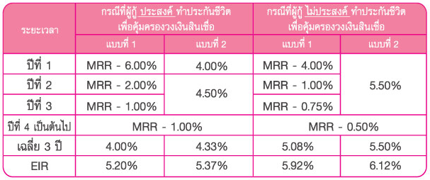 หมายเหตุ : อัตราดอกเบี้ยตลอดอายุสัญญาที่แท้จริง (EIR) คำนวณจากวงเงินกู้ 1.00 ล้านบาท ระยะเวลา 20 ปี (MRR=7.00% ต่อปี ณ วันที่ 23 พฤษภาคม 2560)
