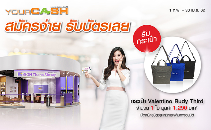 สมัครบัตรสมาชิกอิออน วงเงินสินเชื่อยัวร์แคช ที่สาขาอิออน (ทั่วประเทศ) และได้รับอนุมัติ รับกระเป๋า Valentino Rudy Third มูลค่า 1,290 บาท จำนวน 1 ใบ