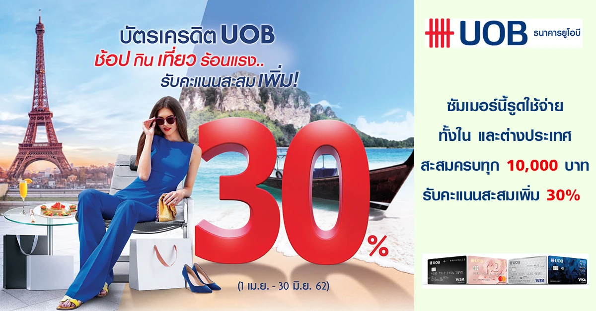 โปรโมชั่น บัตรเครดิตยูโอบี ช้อป กิน เที่ยว ร้อนแรง รับคะแนนสะสมเพิ่ม 30%