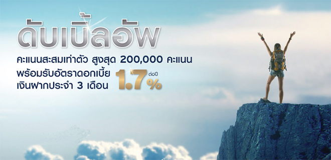 สิทธิพิเศษสำหรับลูกค้าซิตี้แบงก์ ดับเบิ้ลอัพคะแนนสะสมเท่าตัว พร้อมรับอัตราดอกเบี้ยเงินฝากประจำ 3 เดือน 1.70% ต่อปี