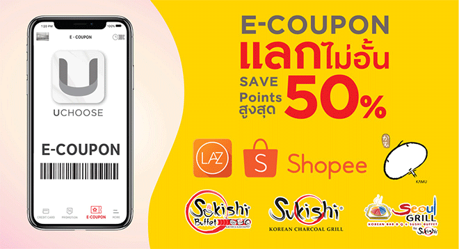 | 6. E-COUPON Sukishi Seoul Grill ใช้ 500 คะแนน จากปกติ 1,000 คะแนน |