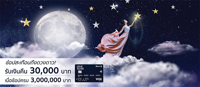 บัตรเครดิตวันสยาม-กสิกรไทย ช้อป 3,000,000 บาท รับเครดิตเงินคืน 30,000 บาท