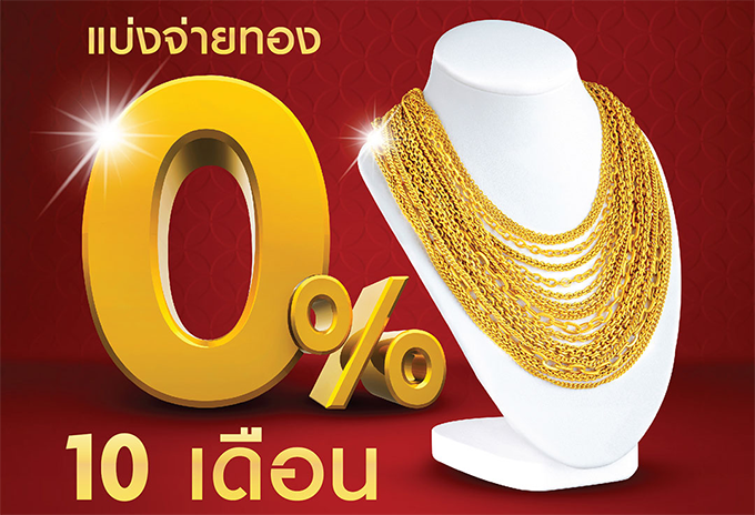 • แบ่งจ่ายทองดอกเบี้ย 0% 10 เดือน เฉพาะรายการแบ่งจ่ายทองรูปพรรณ (รายการแบ่งจ่ายทองแท่งและทองแผ่นไม่เข้าร่วมรายการ)