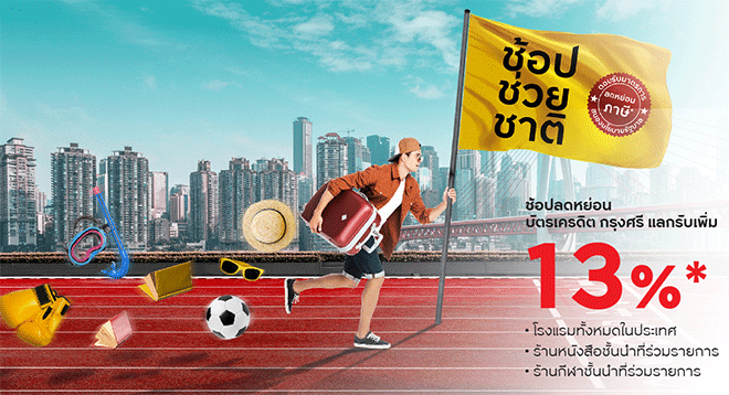 ช้อปช่วยชาติ! ช้อปลดหย่อนกับบัตรเครดิตกรุงศรี แลกรับเครดิตเงินคืนเพิ่ม 13%*