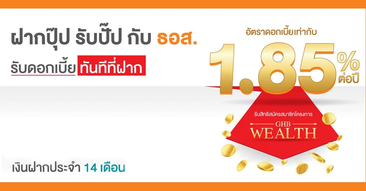 เงินฝากประจำ ธนาคารอาคารสงเคราะห์ ธอส. ghb บัญชีเงินฝากประจำ 14 เดือน