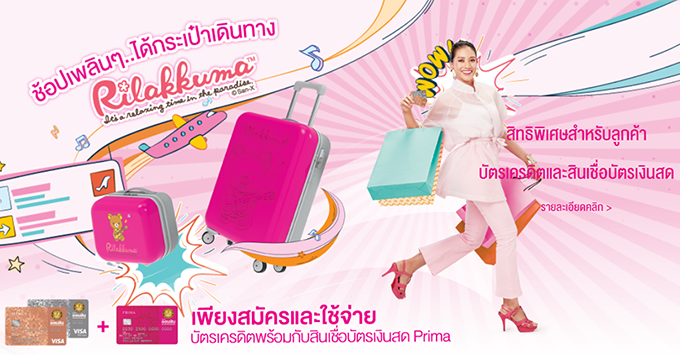 - รับฟรี! กระเป๋าเดินทาง Rilakkuma ขนาด 20 นิ้ว 1 ใบ เมื่อใช้จ่ายผ่านบัตรเครดิต 15,000 บาทขึ้นไป ภายใน 60 วัน