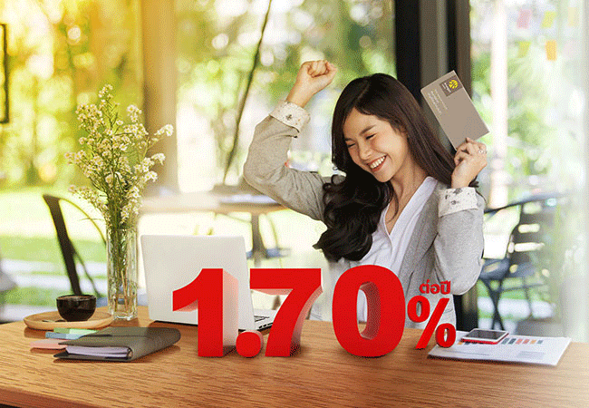 อัตราดอกเบี้ย : 1.70% ต่อปี