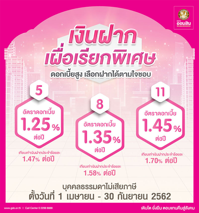 | ประเภทเงินฝาก | อัตราดอกเบี้ย (%ต่อปี) |