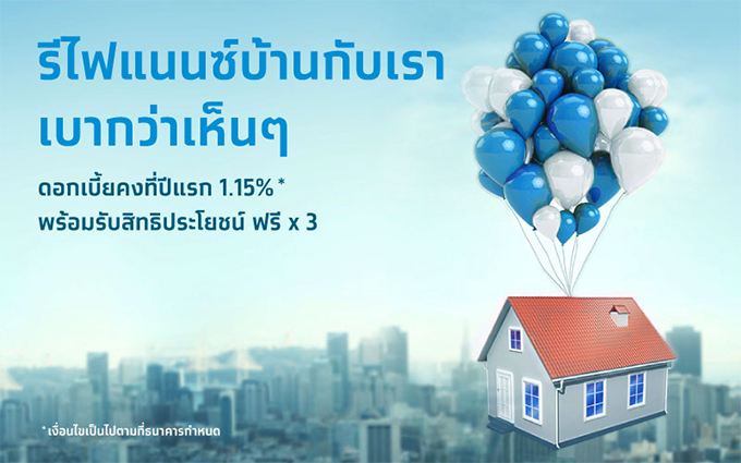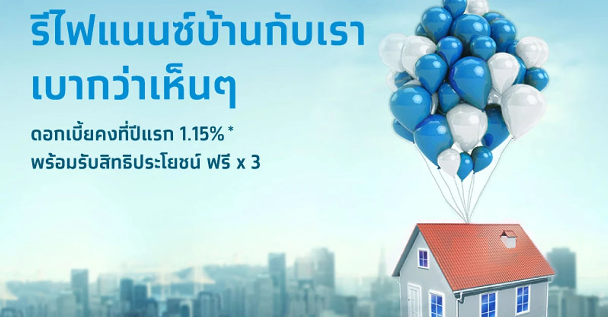 สินเชื่อบ้านกรุงไทย Re- finance อัตราดอกเบี้ยคงที่ปีแรก ต่ำสุด 1.15% รับเพิ่มอีก 3 ฟรี!