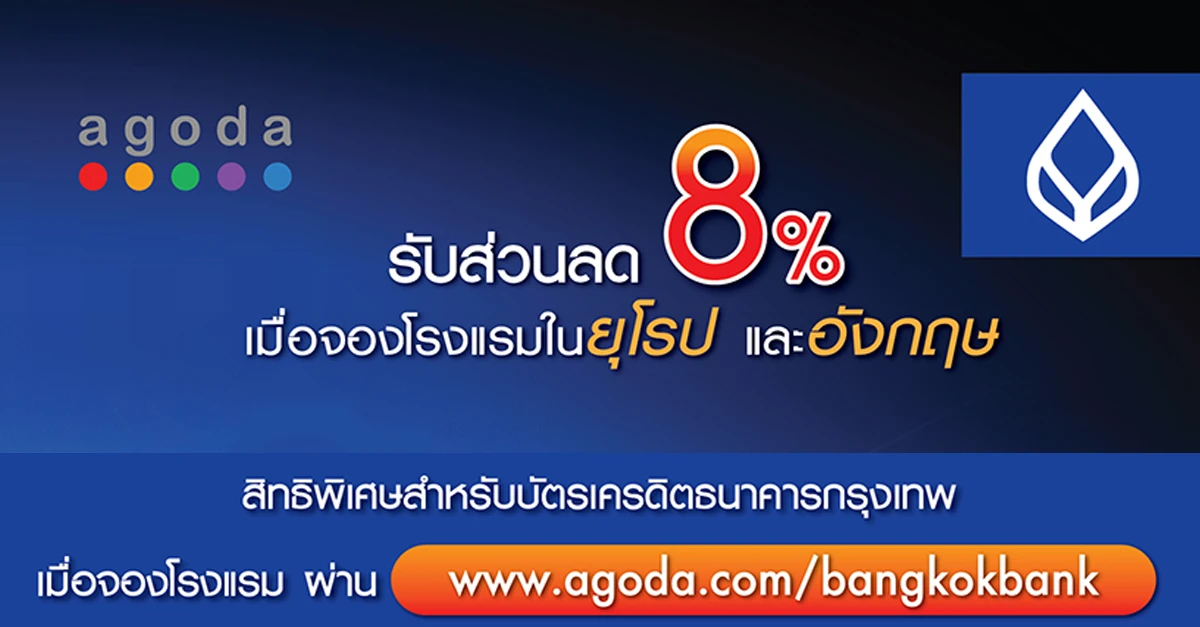 รับส่วนลด 8% เมื่อจองโรงแรมในยุโรป และอังกฤษ ผ่าน agoda ด้วยบัตรเครดิตธนาคารกรุงเทพ