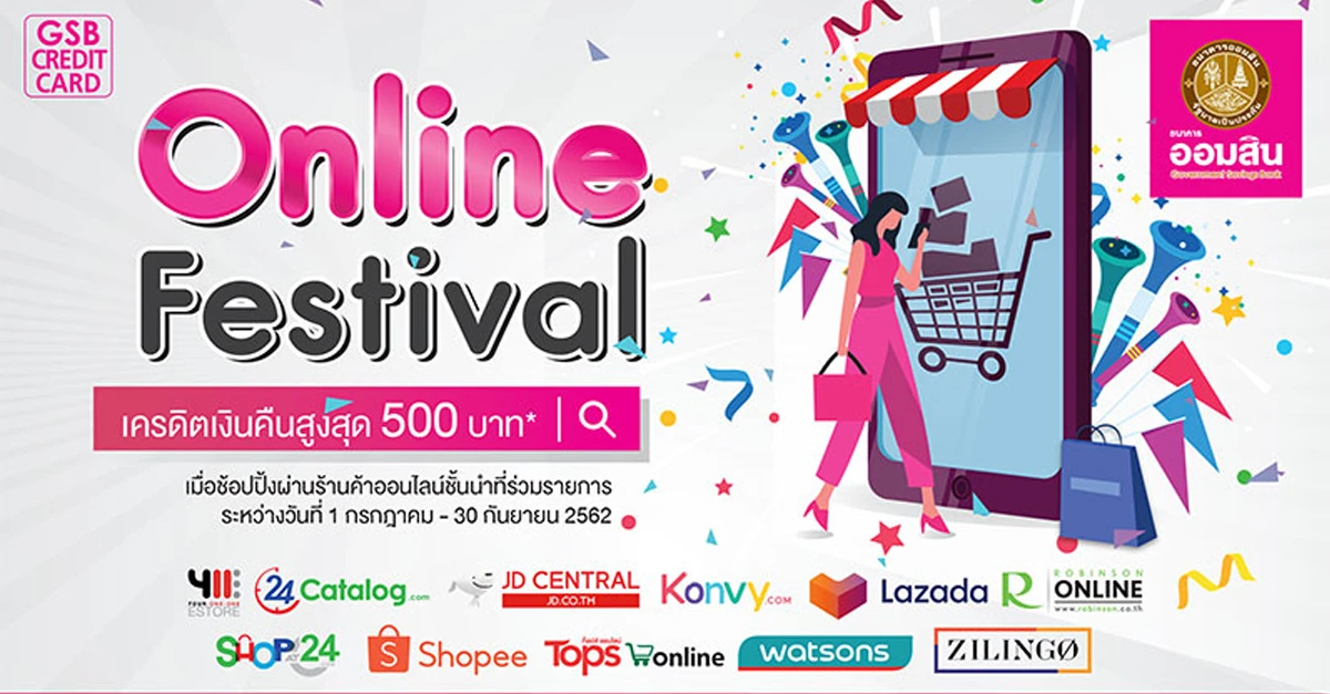 Online Festival ช้อปกระจายรับเครดิตเงินคืน กับบัตรเครดิตธนาคารออมสิน วันนี้ - 30 ก.ย. 62