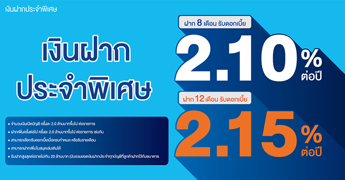 บัญชีเงินฝากประจำพิเศษ (สมุดคู่ฝาก) ระยะเวลาการฝาก 8 เดือน หรือ 12 เดือน ... ธนาคารไทยเครดิต