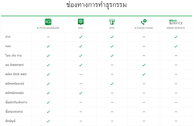 - สำหรับลูกค้าที่สมัครบริการ K PLUS มาก่อนหน้าสามารถเปิดบัญชีได้เลยไม่ต้องไปสาขาและทำทุกธุรกรรมผ่านช่องทางอิเล็กทรอนิกส์ ตั้งแต่กระบวนการเปิด - ปิดบัญชี