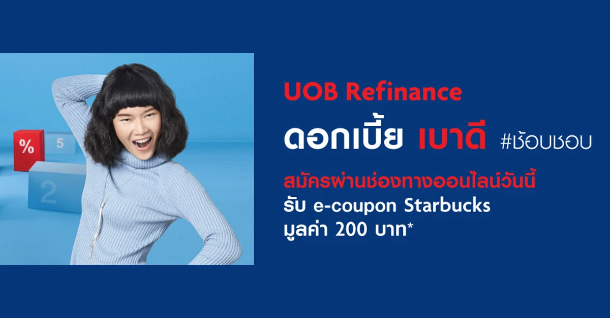 สินเชื่อ ธนาคารยูโอบี uob ดอกเบี้ยต่ำ ยูโอบี สินเชื่อรีไฟแนนซ์ รีไฟแนนซ์ สมัครออนไลน์ ธ.ยูโอบี สมัครสินเชื่อ ดอกเบี้ยถูก e-coupon starbucks uob refinance ยูโอบี โฮมโลน รีไฟแนนซ์