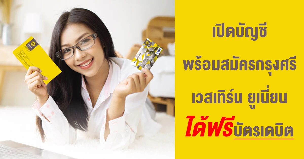 เปิดบัญชีพร้อมสมัครกรุงศรีเวสเทิร์น ยูเนี่ยน วันนี้! ฟรี...ค่าธรรมเนียมบัตรเดบิต 300 บาท