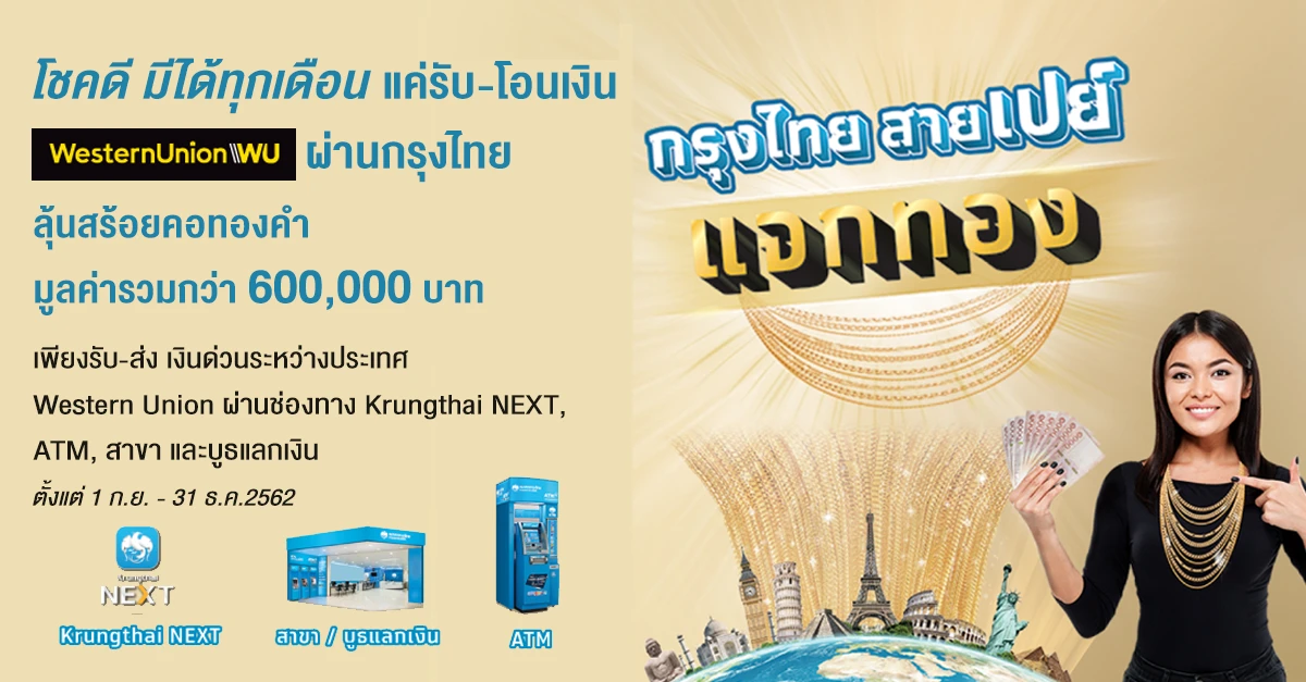 โชคดี มีได้ทุกเดือน แค่ รับ-โอนเงินผ่าน Western Union ผ่านกรุงไทย ลุ้นสร้อยคอทองคำ