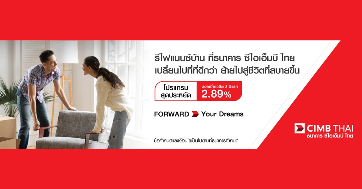 รีไฟแนนซ์บ้าน โปรแกรมดอกเบี้ยสุดประหยัดเฉลี่ย 3 ปีแรก 2.89% จาก ธนาคาร ซีไอเอ็มบี ไทย