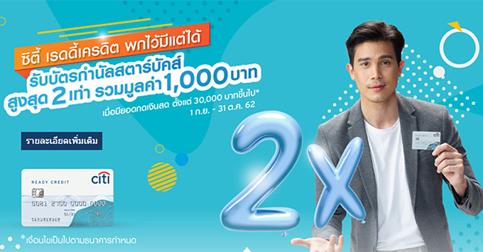 - พิเศษ! รับบัตรกำนัลมูลค่า 2x เมื่อมียอดกดเงินสด/โอนยอดเงินจ่ายตามใจติดต่อกันสองเดือน ระหว่างวันที่ 1-30 ก.ย. 62 และ 1-31 ต.ค. 62 และมียอดคงค้างติดต่อกันสองเดือน ณ วันที่ 30 ก.ย. และ 31 ต.ค. 62 ระหว่าง 30,000-49,999 บาท รับบัตรกำนัลรวม 400 บาท, ระหว่าง 50,000-99,999 บาท รับบัตรกำนัลรวม 600 บาท และ 100,000 บาทขึ้นไป รับบัตรกำนัลรวม 1,000 บาท